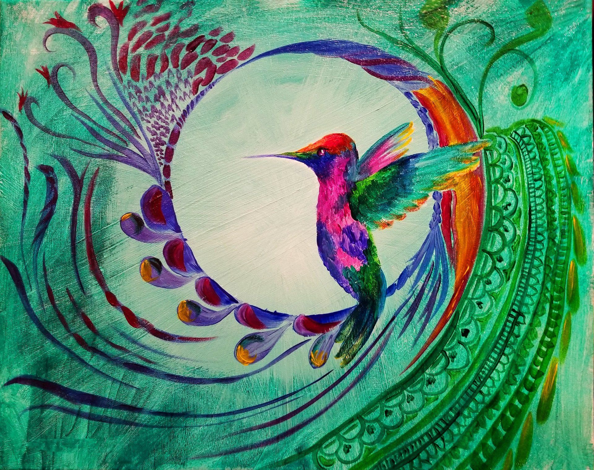"Hummingbird Dreams" Acrylic on Canvas (painting party demo piece) 2018